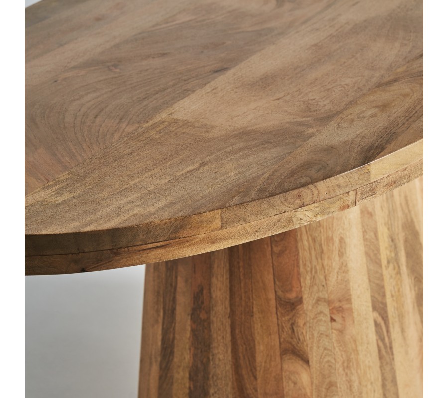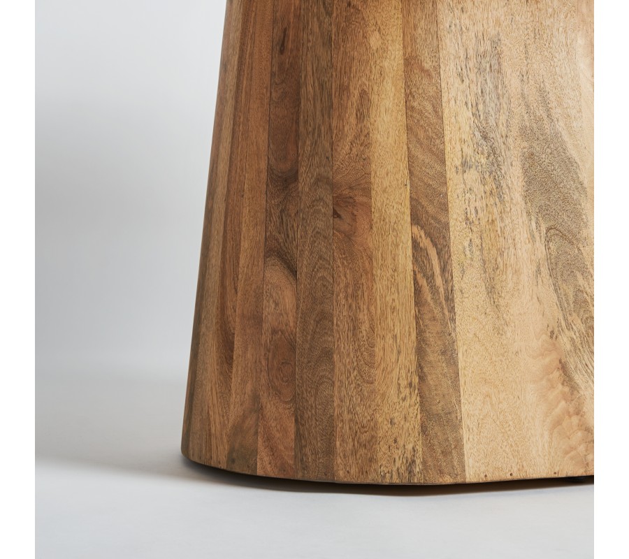 Jeho dizajn je založený na vyskladaných latiek masívneho dreva, pričom ich odtiene sa striedajú v tónoch okrovej žltej a okrovej hnedej čím sa zmenšuje monotónnosť a pridáva stolu živý a zaujímavý vzhľad. Každá latka je starostlivo vybraná a premyslene umiestnená, čo podčiarkuje jeho kvalitu a štýlovosť.
