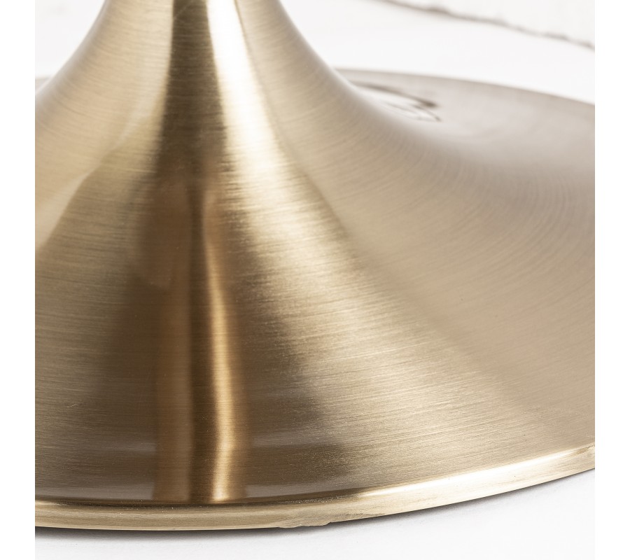 Okrúhly stôl Brilon je fantastickou voľbou do menších jedálenských priestorov, kde vnesie svojou kombináciou mramoru a zlatej farby nádych luxusu. Jeho dizajn je inšpirovaný art deco estetikou. Má jednoduchú siluetu, v ktorej dominujú kruhové tvary vrchnej dosky a podstavy. Elegantná štíhla noha stola je vyrobená z kovu v žiarivej zlatej farbe, ktorá kontrastuje s čiernou farbou vrchnej dosky. Mramorový dizajn so svetlou kresbou kameňa pôsobí sofistikovaným a nadčasovým dojmom. Túto farebnú kombináciu ľahko doplníte do priestorov zariadených v neutrálnych odtieňoch, no môžete tiež pridať stoličky s výrazným pestrým zamatovým alebo buklé čalúnením. Skvelou voľbou sú aj stoličky z rovnakej kolekcie Brilon, ktoré nájdete v našej ponuke. Jedáleň môžete tiež doplniť príborníkom s detailmi z mramoru alebo so štýlovým vykladaným zdobením. S nohou stola sa výborne prepojí aj dekorácia či svietnik v zlatom prevedení. Pokiaľ máte radi extravaganciu, môžete pridať výrazný lesklý nábytok v glamour štýle, či výrazné vzory alebo zvieracie motívy.
