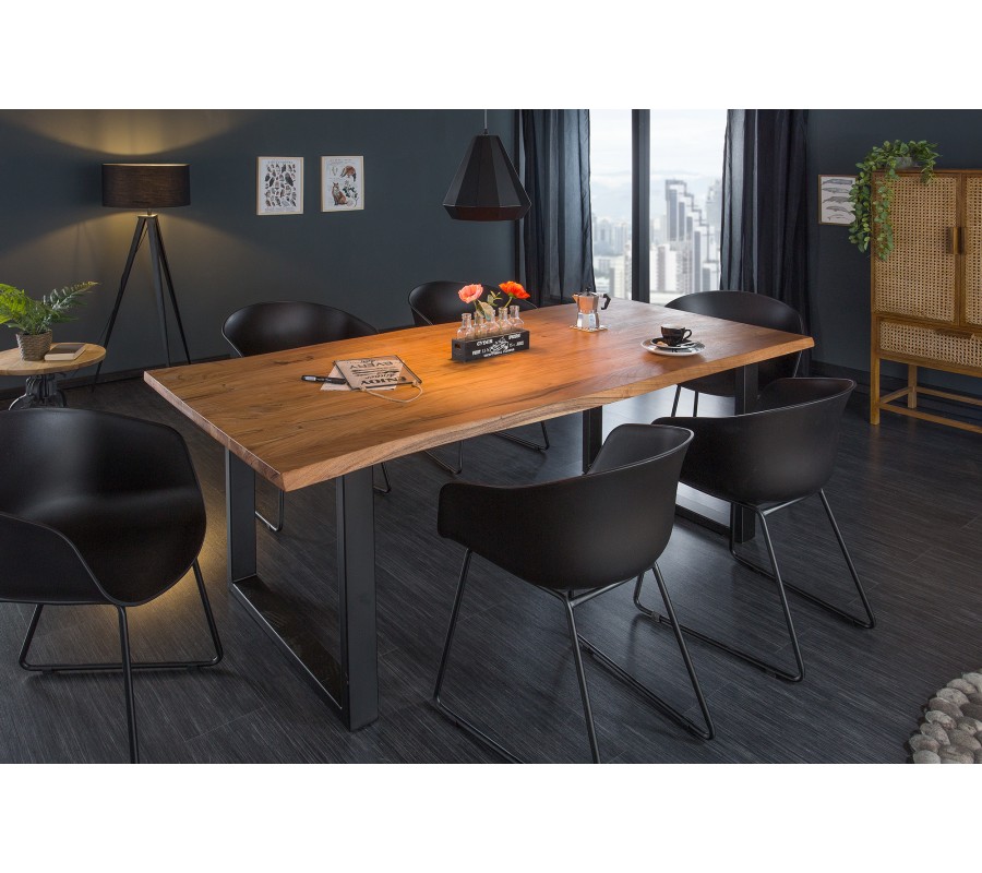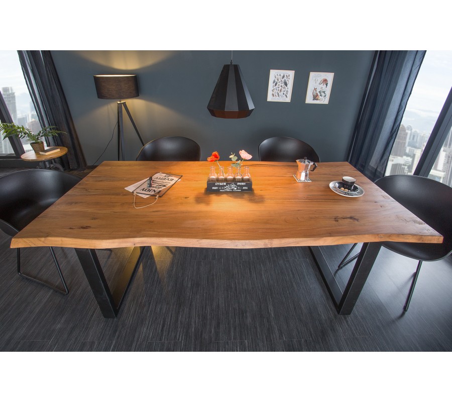 Industriálny medovo hnedý obdĺžnikový jedálenský stôl Mammut s vrchnou doskou z masívneho akáciového dreva 200 cm