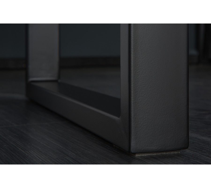 Stôl má jednoduchú modernú siluetu s kovovými nožičkami v tvare U s čiernym práškovým nástrekom. Ten im dodáva matný vzhľad a vďaka univerzálnej farbe máte široké možnosti kombinácií s ďalším nábytkom. Do dizajnu prinášajú nádych industriálneho štýlu.