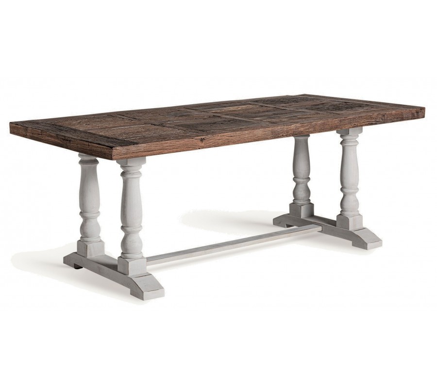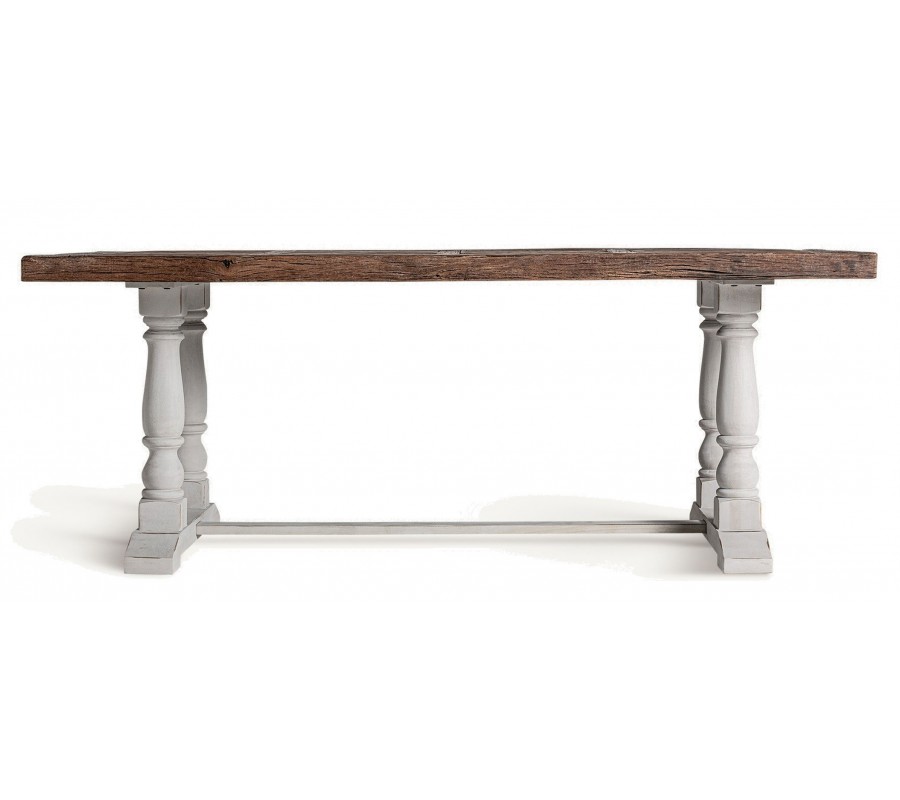 Kombinácia bielej farby s prirodzené hnedým kontrastom dreva dáva tomuto stolu aj potenciál pre umiestnenie v provensalský či vidiecky ladených jedálňach a reštauráciach. Za stôl sa pohodlne usadí 6 ľudí.