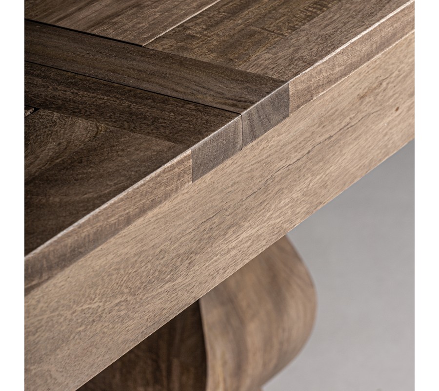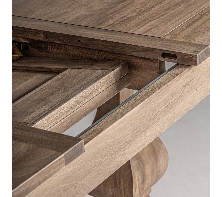 Luxusný jedálenský rozkladací stôl v koloniálnom štýle, vyrobený z dreva mango, je vhodným doplnkom pre jedálne, ktoré sa snažia o spojenie elegance a praktickosti. Robustná konštrukcia a prírodná krása mangového dreva z neho robia výnimočný kúsok nábytku, odolávajúci vonkajším vplyvom a zároveň pridávajúci vonkajšiemu priestoru pocit luxusu.