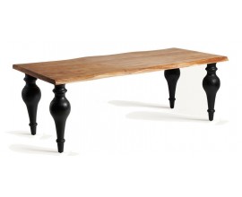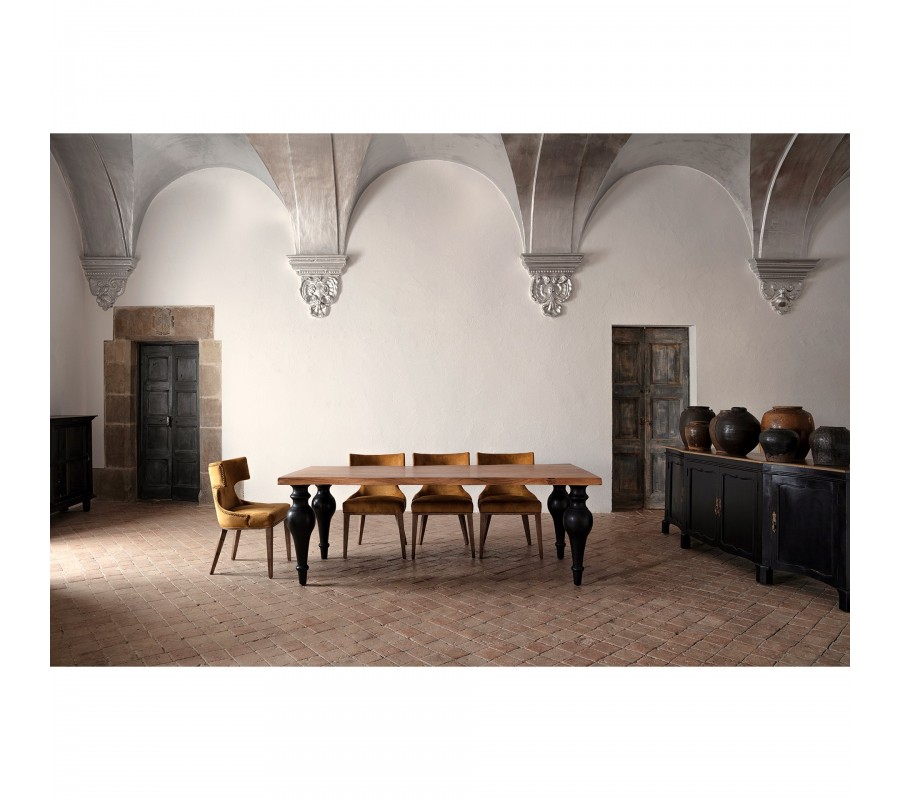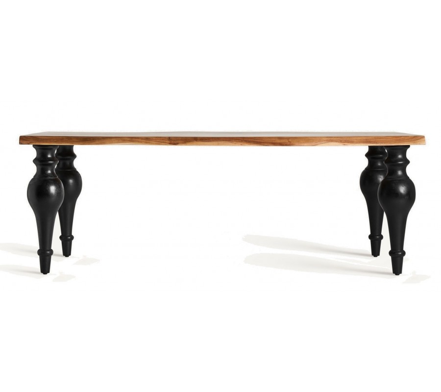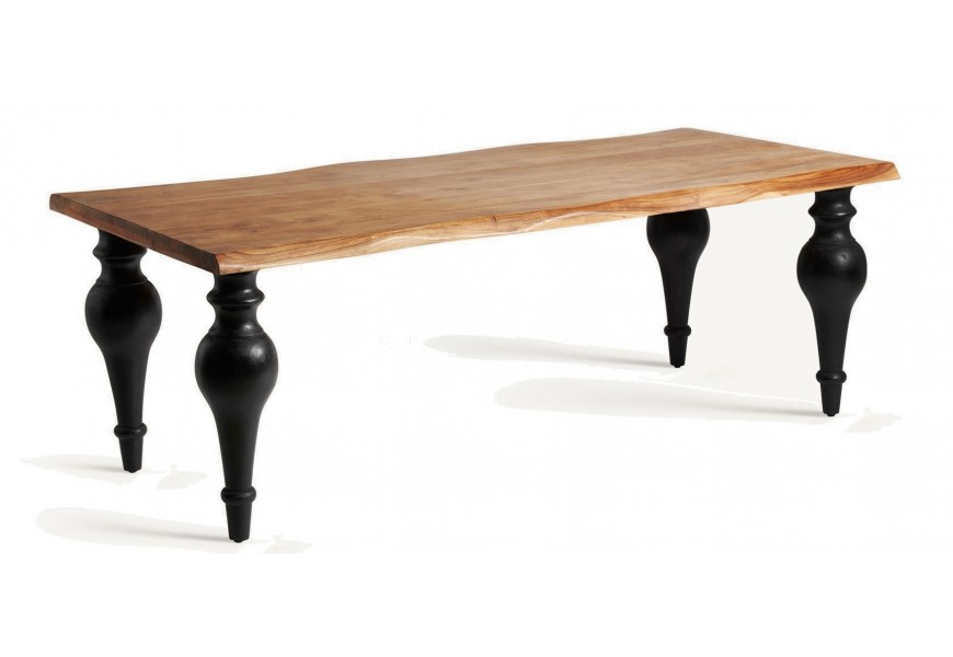Luxusný vintage obdĺžnikový jedálenský stôl Zena Noir s čiernymi vyrezávanými nožičkami a masívnou vrchnou doskou 220 cm