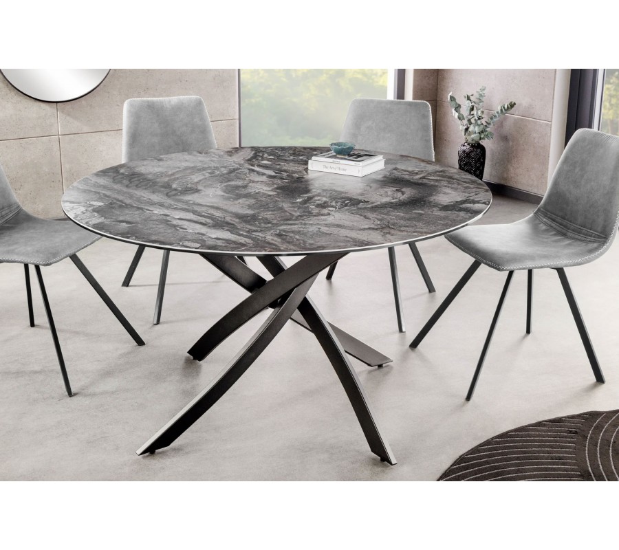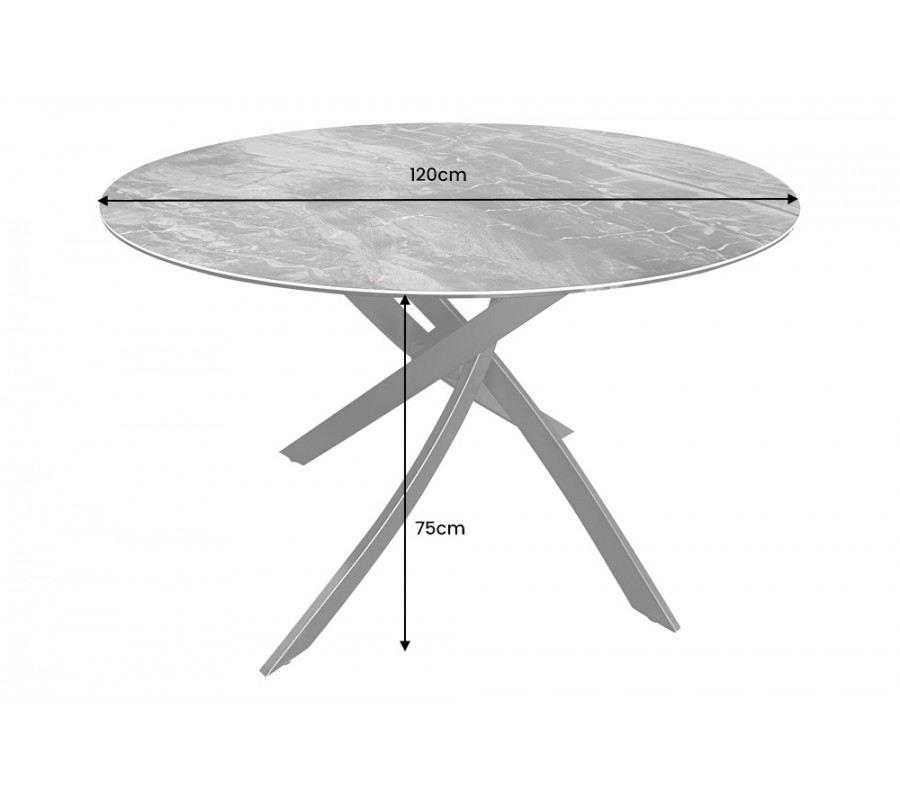 Moderný sivý okrúhly jedálenský stôl Valldemossa s mramorovou kresbou na vrchnej doske 120 cm