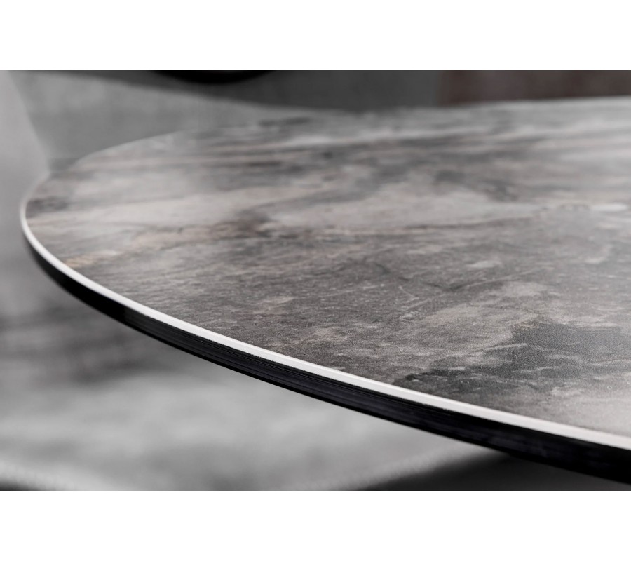 Stôl je skvelou voľbou do jedálne zariadenej v neutrálnych šedých odtieňoch, kde vynikne jeho mramorová kresba a jedinečný tvar nožičiek. Jeho univerzálna farebnosť vám však umožňuje pridať aj farebné prvky, ako napríklad stoličky s výrazným čalúnením či lesklú metalickú stredovú dekoráciu. Teplé odtiene vrchnej dosky môžete vyzdvihnúť pridaním doplnkov v svetlej hnedej či béžovej farbe.