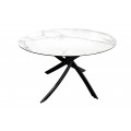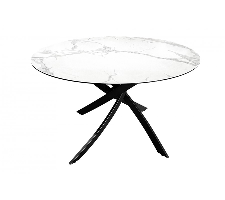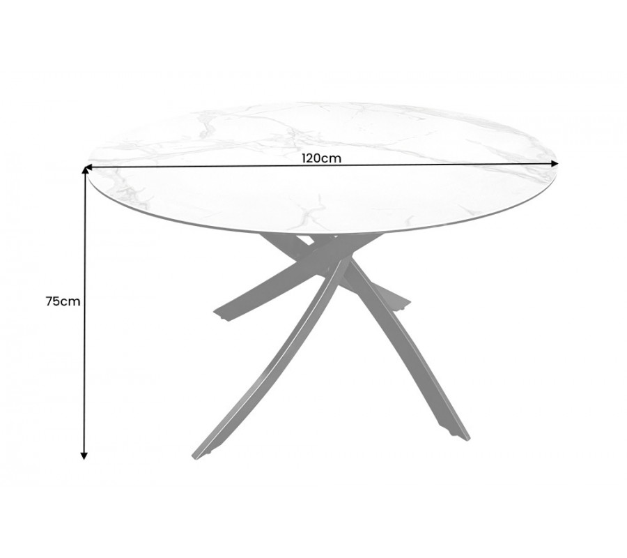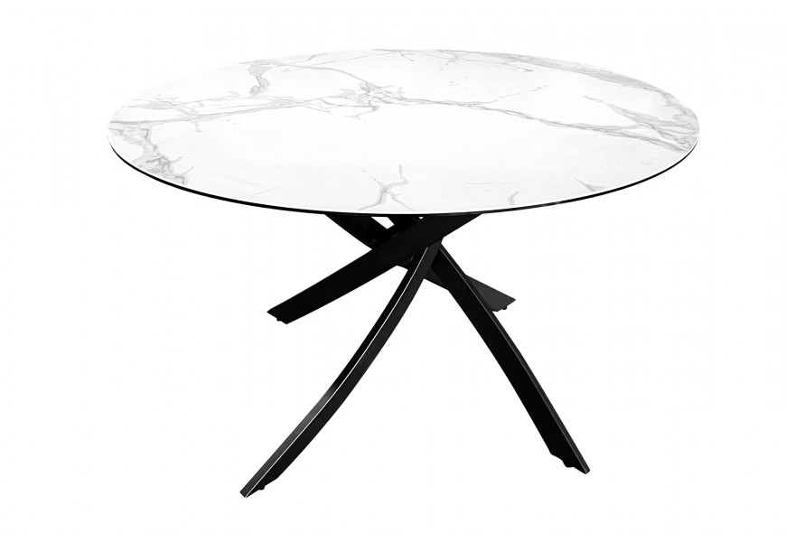 Moderný okrúhly jedálenský stôl Valldemossa s bielou vrchnou doskou s mramorovým dizajnom a prekríženými nohami 120 cm