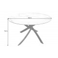 Na prvý pohľad vás zaujme okrúhla vrchná doska v bielej farbe so sivou mramorovou kresbou, ktorá prinesie do vašej jedálne nádych luxusu. Jej povrch je pokrytý bezpečnostným sklom, ktoré je nesmierne pevné a odolné. Zjednodušuje tiež údržbu stola a chráni svetlú farbu.