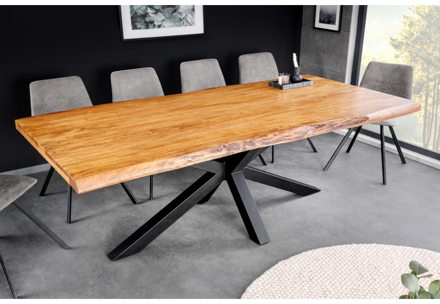 Masívny obdĺžnikový jedálenský stôl Mammut s vrchnou doskou z akáciového dreva v prírodnej hnedej farbe 200 cm