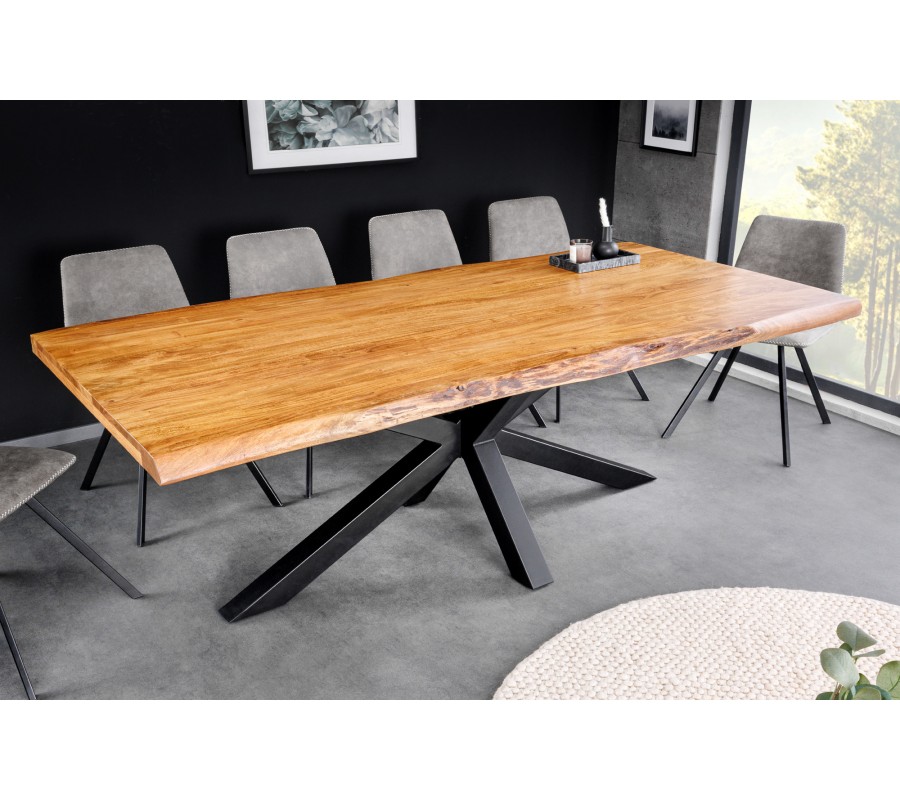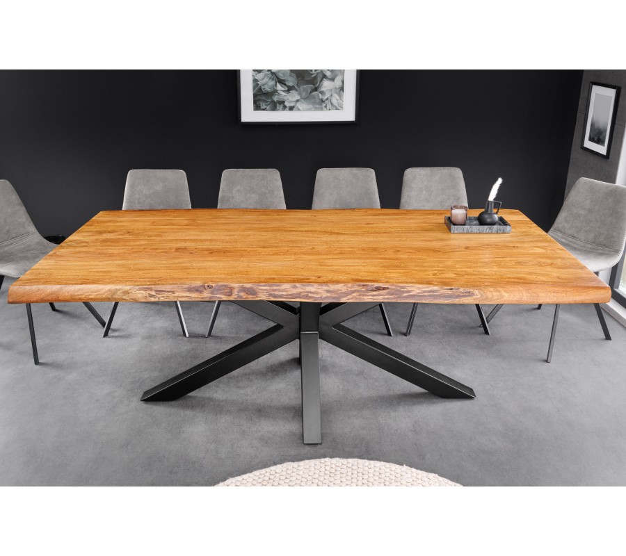 Hodí sa do jedální zariadených v industriálnom štýle, kde ho môžete doplniť stoličkami s čiernymi kovovými nožičkami, alebo moderným lustrom s drôteným tienidlom. Skvelou voľbou je tiež príborník, alebo ďalší nábytok z masívneho dreva, napríklad z rovnakej kolekcie Mammut, ktorú nájdete v našej ponuke. Prírodný charakter môžete ešte zdôrazniť živou zelenou rastlinou.