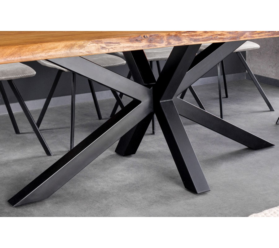 Spodnú časť stola tvorí podstava so štyrmi hranatými, prekríženými nožičkami. Sú vyrobené z kovu s matným čiernym nástrekom. Zabezečujú výbornú stabilitu nábytku a zároveň prinášajú do dizajnu vizuálne zaujímavý, jemne industriálny prvok. Za stôl pohodlne usadíte 10 osôb.