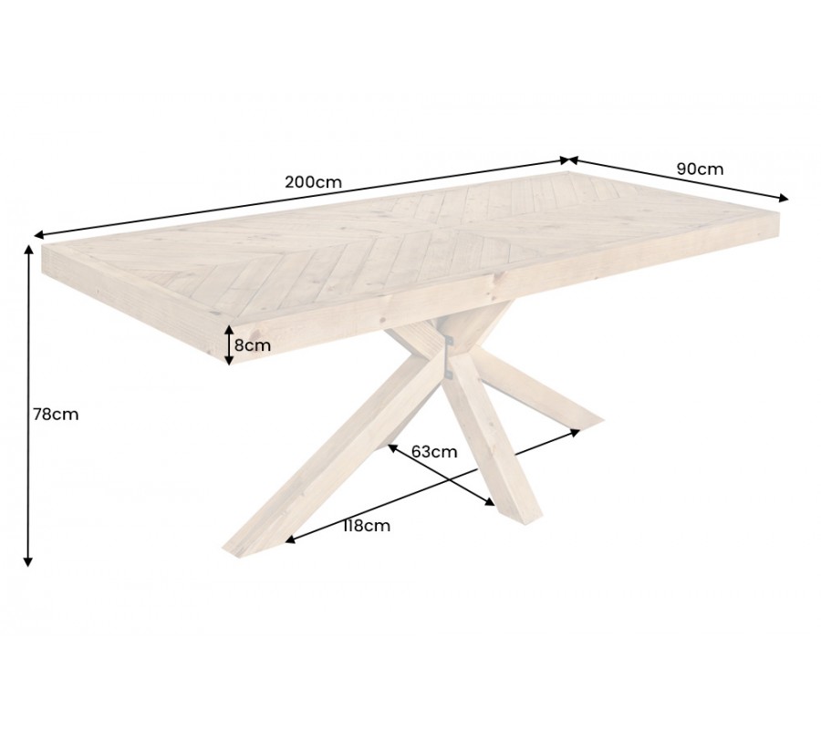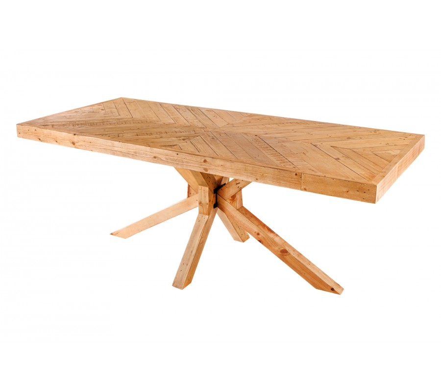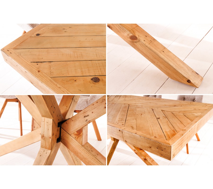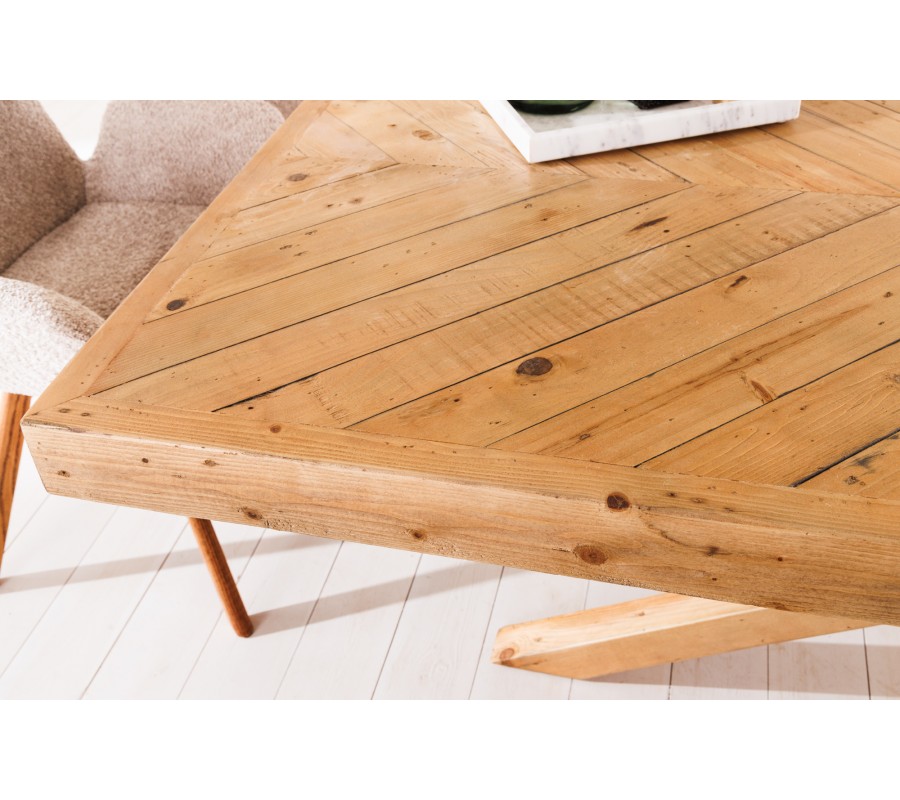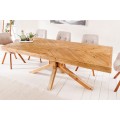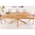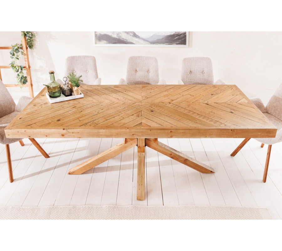 Masívny svetlo hnedý obdĺžnikový vidiecky jedálenský stôl Nina s parketovým vzorom na vrchnej doske 200 cm