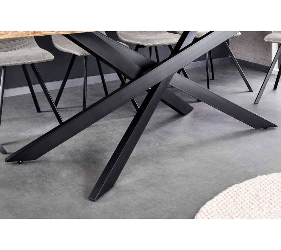 Podstava stola je vyrobená z kovu v čiernej farbe s práškovým nástrekom, ktorý jej dodáva matný vzhľad. Tvoria ju štyri šikmé nožičky, ktoré sa v strede krížia. Nábytku tak dodávajú zaujímavý industriálny vizuálny prvok a tiež zaručujú výbornú stabilitu.
