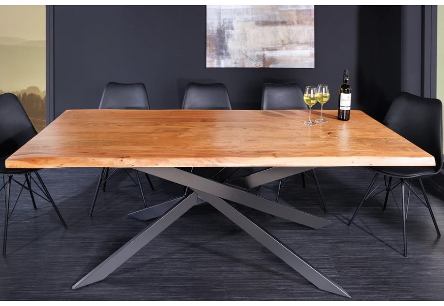 Moderný masívny obdĺžnikový jedálenský stôl Mammut s doskou z akáciového dreva v medovej hnedej farbe 200 cm
