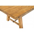 Stôl je vyrobený z masívneho dreva a jeho príjemný, svetlý hnedý odtieň pôsobí teplým dojmom. Na hladkých povrchoch je tiež viditeľná štruktúra dreva a kresba letokruhov. S týmto prírodným materiálom výborne korešponduje dizajn vrchnej dosky stola, ktorú tvoria dlhé úzke latky.