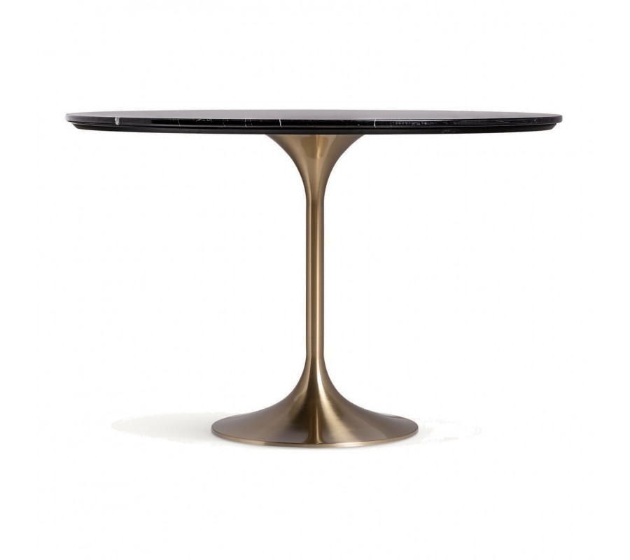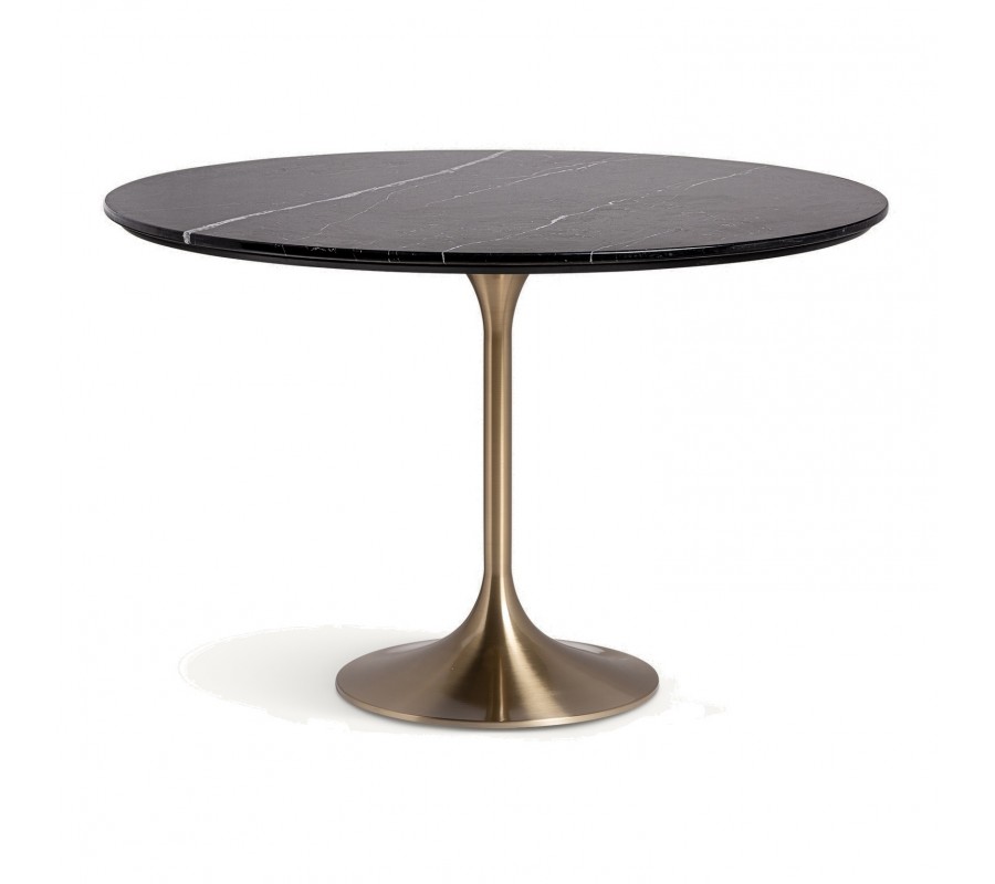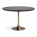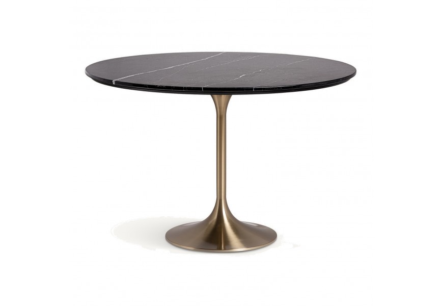 Luxusný art deco okrúhly jedálenský stôl Rebecca s čiernou kamennou vrchnou doskou a nohou v zlatej farbe 120 cm
