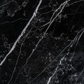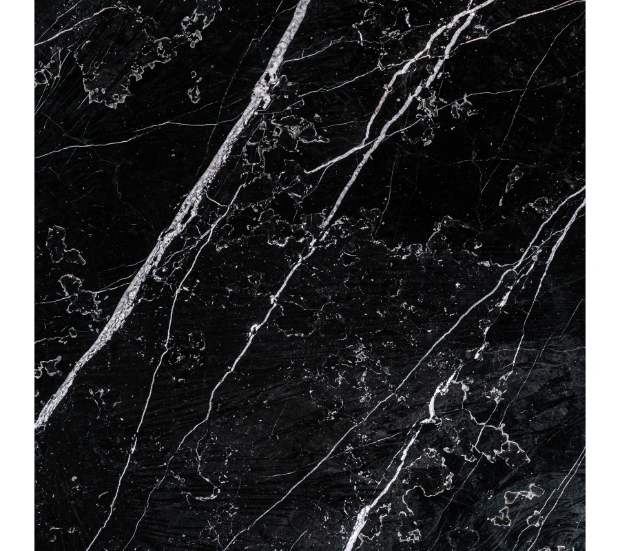 Silueta stolíka je moderná a kombinuje krivky s hladkými rovnými povrchmi. Moderný je aj materiál, z ktorého je vyrobená okrúhla vrchná doska. Ide o sintrovaný kameň, ktorý vzniká fúziou prírodných minerálov pri vysokej teplote. Jeho povrch má naturálny vzhľad s nádhernou kresbou, pripomínajúcou čierny mramor. Vrchná doska je vďaka tomuto materiálu mimoriadne kompaktná a pevná. Odolná vplyvom každodenného používania a vy si tak budete môcť užívať jej unikátny vzhľad po dlhú dobu.
