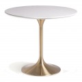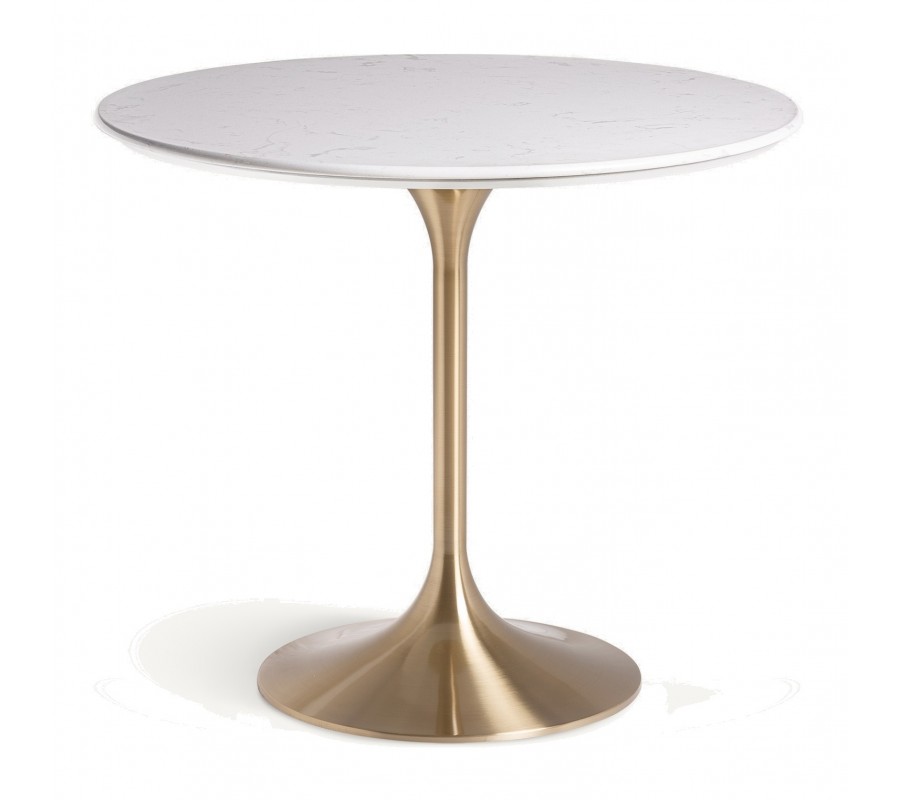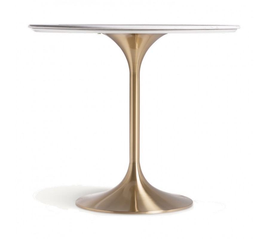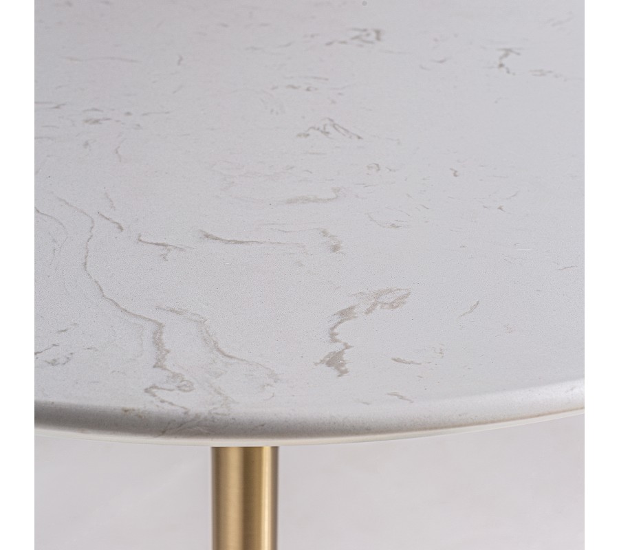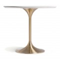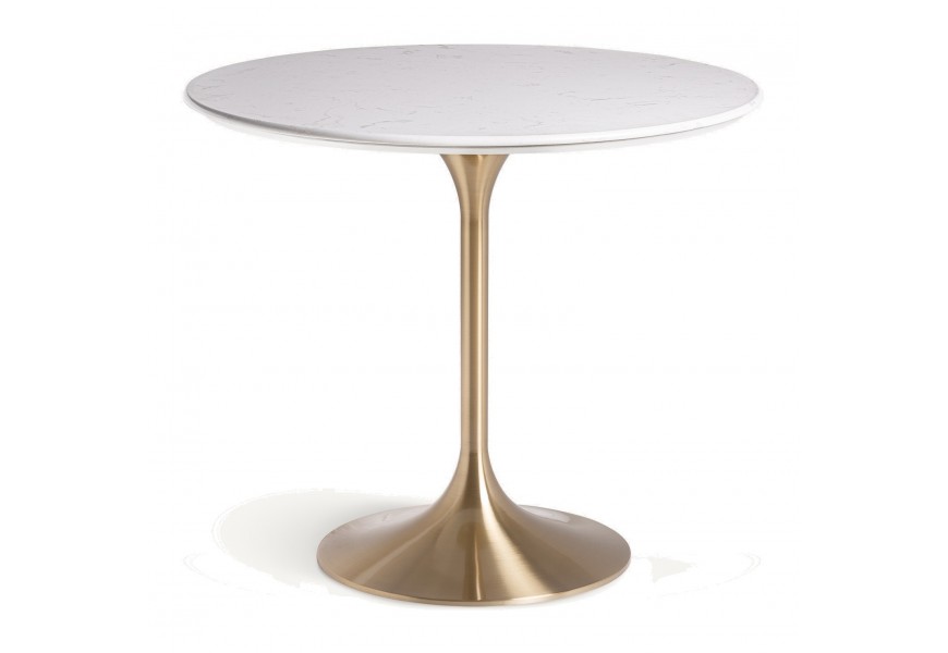 Luxusný art deco okrúhly jedálenský stôl Rebecca s bielou mramorovou doskou a nohou v zlatej farbe 90 cm