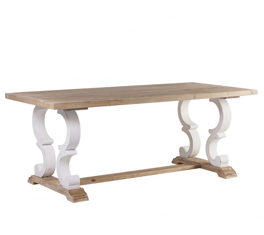 Luxusný rustikálny jedálenský stôl Semi z masívneho dreva v hnedej a bielej farbe s provensalským nádychom 195 cm