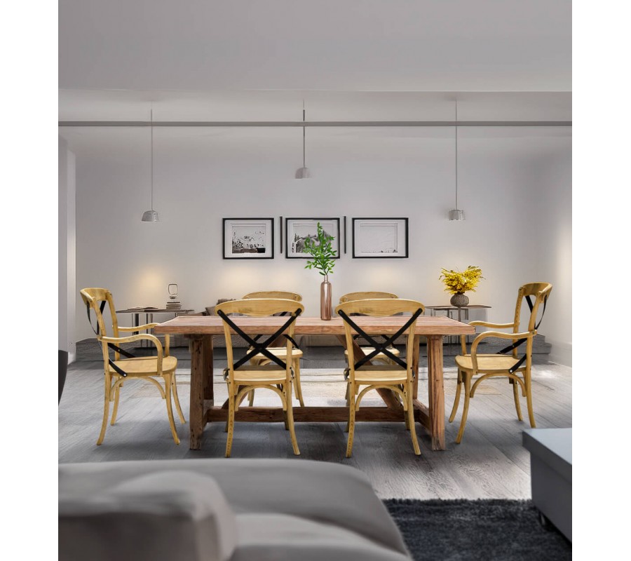 Masívna doska stola je obdĺžnikového tvaru s dĺžkou až 250 cm, čo vám umožní usadiť za stôl až desať osôb.