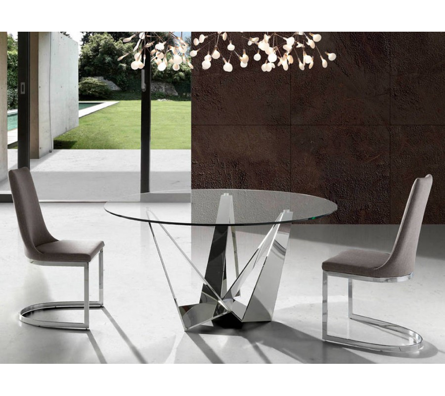 Luxusný sklenený okrúhly jedálenský stôl Urbano s dizajnovou lesklou chrómovou podstavou 150 cm