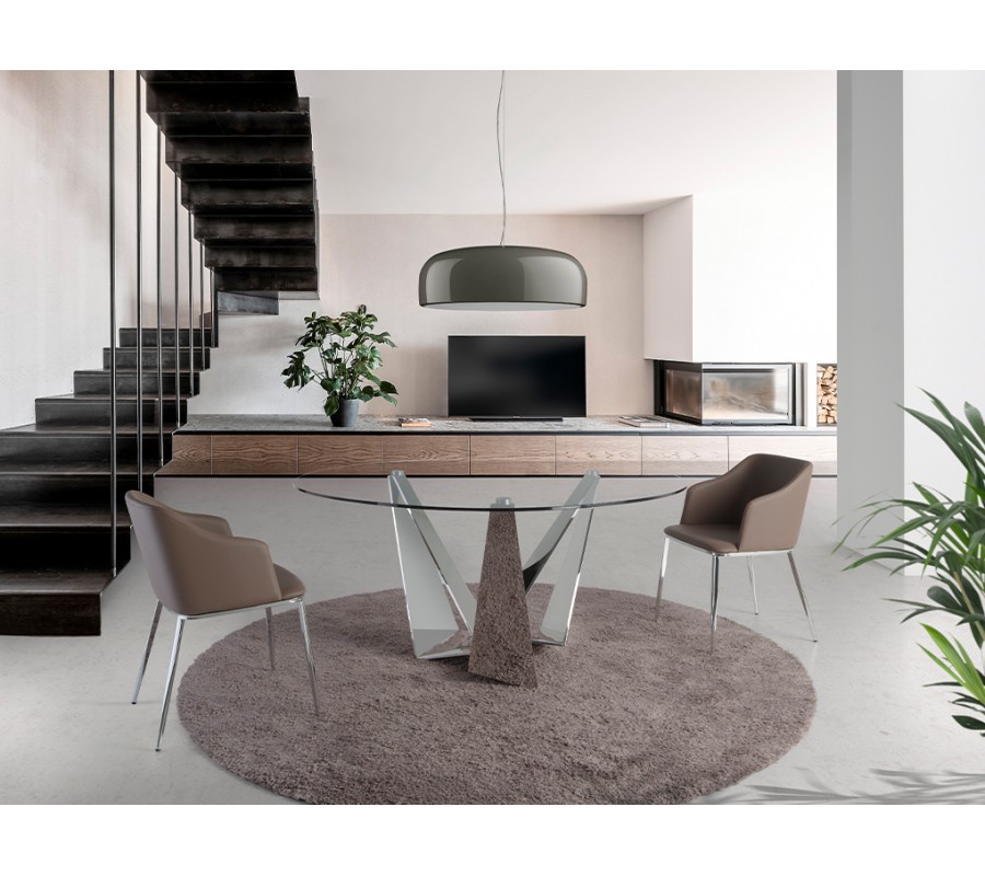 Jedálenský stôl Urbano vás očarí svojím moderným štýlom a eleganciou súčasného talianskeho dizajnu. Sofistikovaná kombinácia skla a chrómu pôsobí vzdušným dojmom a lesklé povrchy vám pomôžu priestor presvetliť. Originálny tvar podstavy spraví z tohto nábytku dominantný dekoračný element miestnosti.