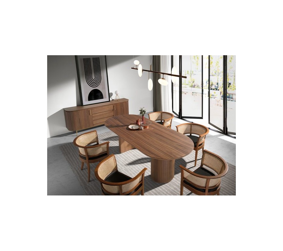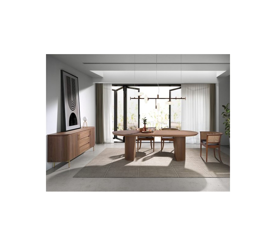 Jedálenský stôl Vita Naturale spája moderný minimalistický vizuál s naturálnou krásou orechového dreva. Súčasný taliansky dizajn dodá miestnosti nádych luxusu a prírodný materiál zasa pocit tepla a útulnosti. Okolo vrchnej dosky s dĺžkou 240 cm usadíte 8 osôb.