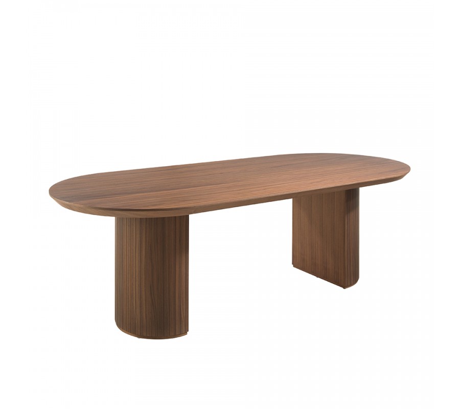 Luxusný moderný oválny jedálenský stôl Vita Naturale s dvomi nohami zo svetlého hnedého orechového dreva 240 cm