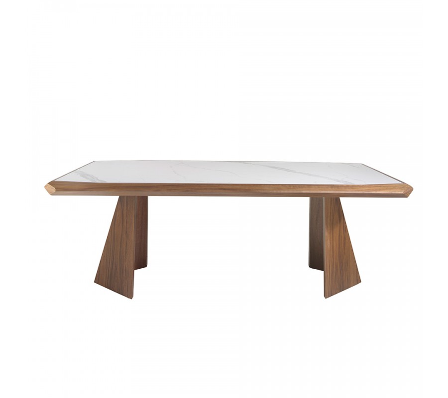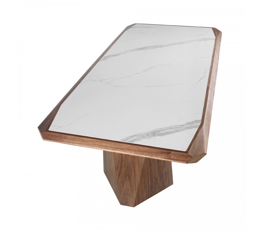 Luxusný dizajnový obdĺžnikový jedálenský stôl Forma Moderna z hnedého orechového dreva s bielou mramorovou doskou 220 cm