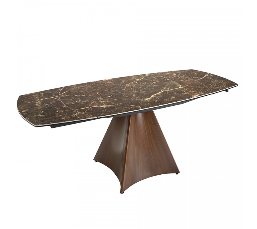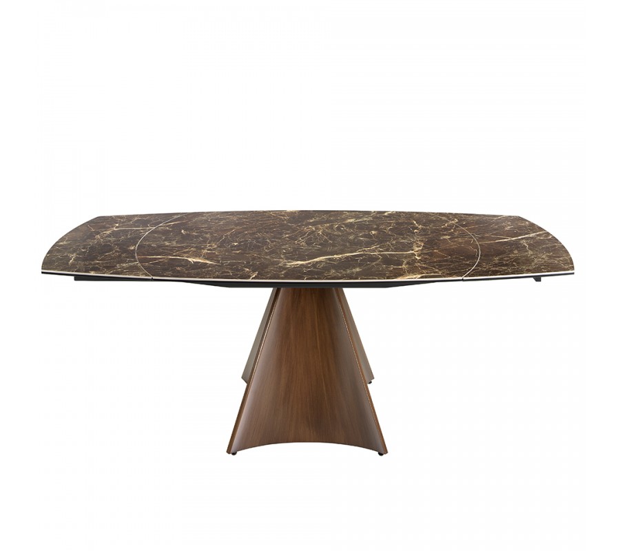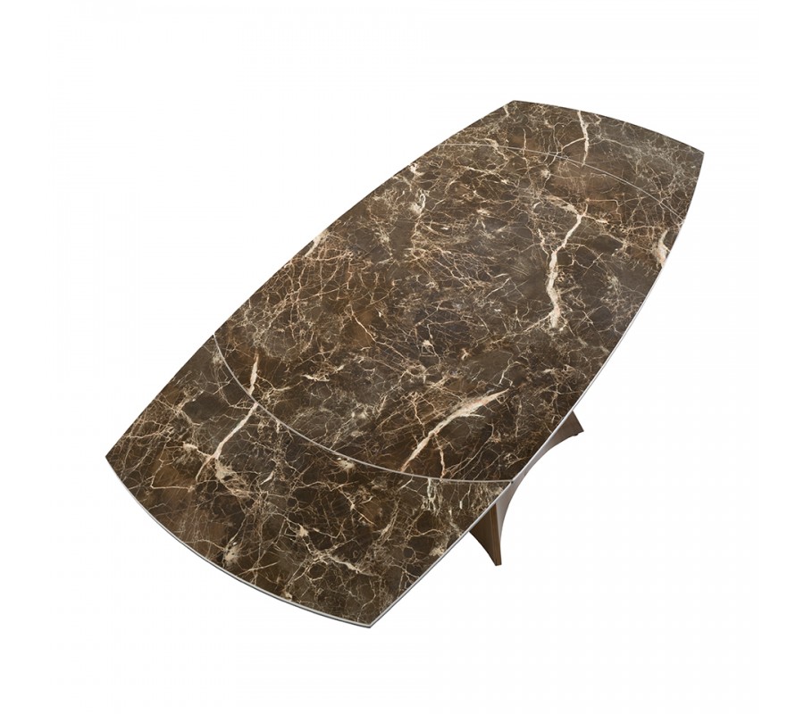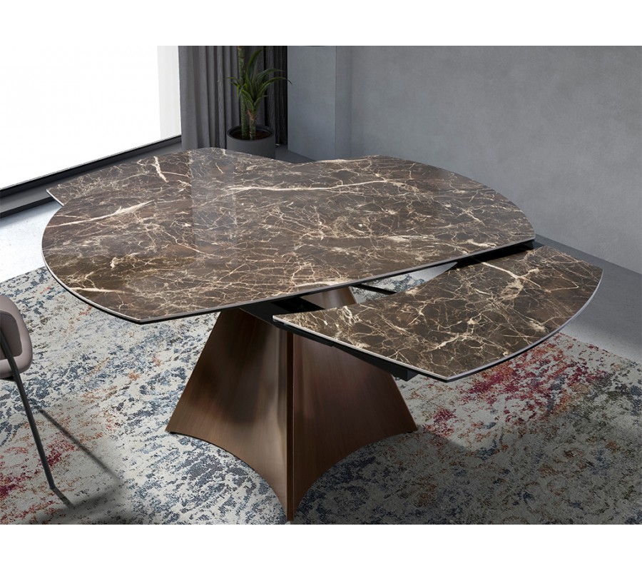 Luxusný moderný obdĺžnikový rozkladací jedálenský stôl Vita Naturale s doskou s mramorovým dizajnom hnedá 135 - 205 cm