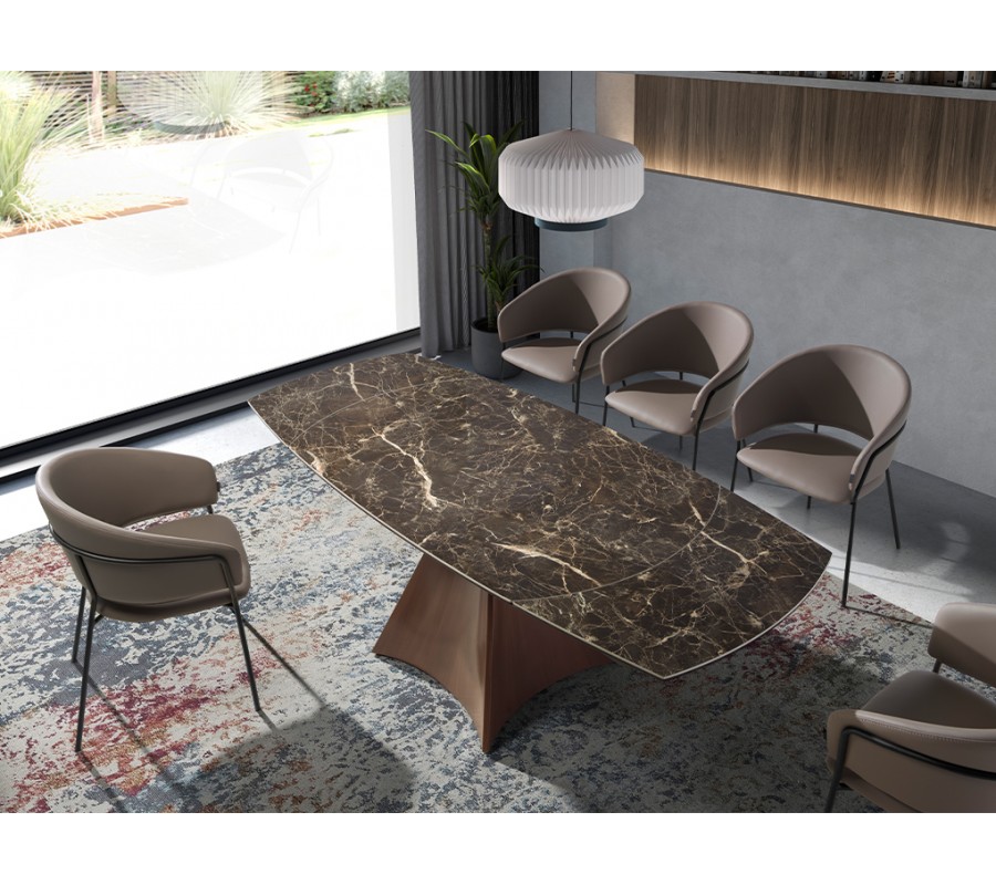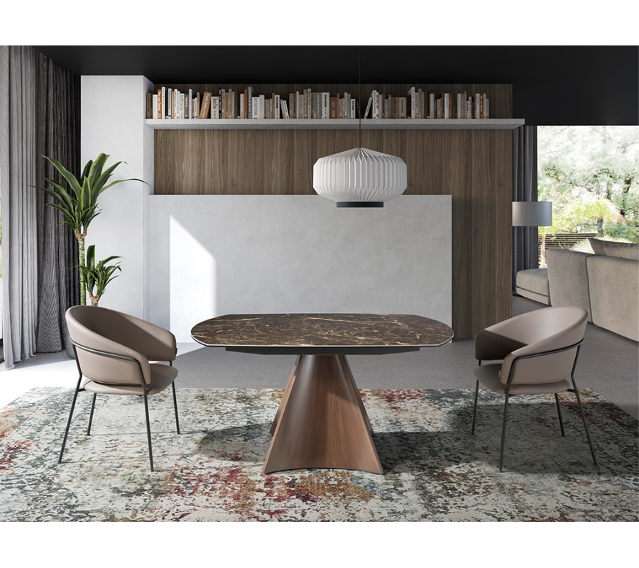 Jedálenský stôl Vita Naturale je jedinečným spojením súčasného talianskeho dizajnu s prírodným vizuálom. Jeho originálna moderná silueta a elegantná paleta hnedých zemitých odtieňov z neho robí centrálny prvok jedálne, ktorý je dokonalým spojením krásy a funkčnosti.