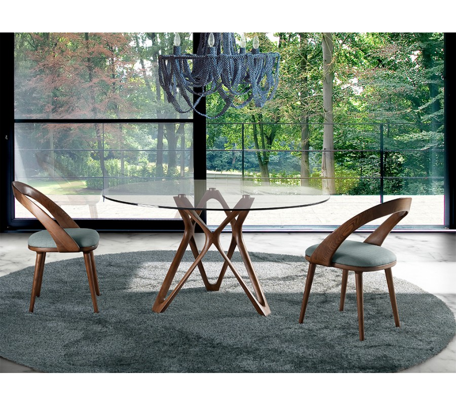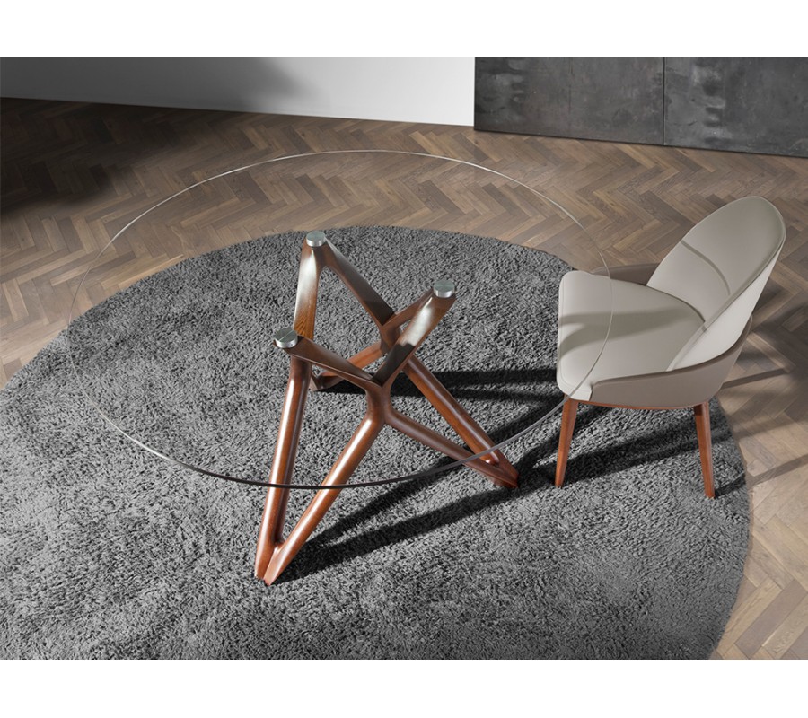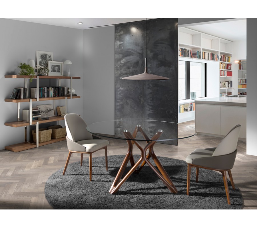 Jedálenský stôl Forma Moderna prinesie do vašej jedálne originálny centrálny prvok. Sofistikovaná kombinácia skla a dreva dodá miestnosti nádych elegancie a moderný taliansky dizajn vytvorí luxusný vizuál, ktorý očarí vašich hostí.