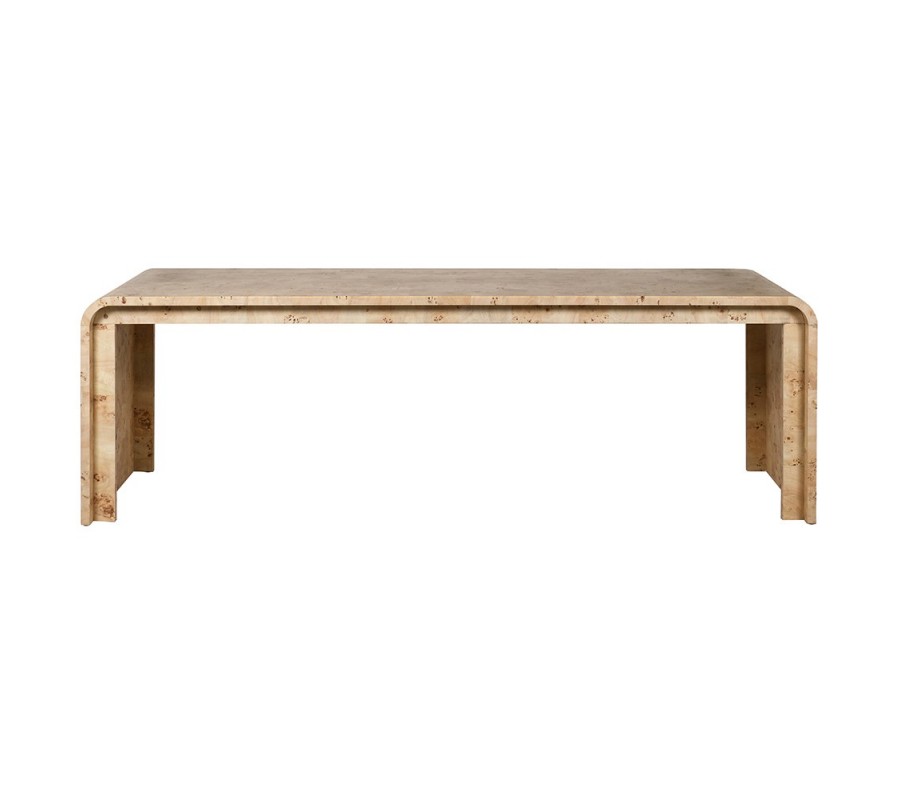 Jedálenský stôl Ygritte bude originálnym stredobodom vašej domácnosti. Minimalistický dizajn osviežujú retro prvky a výnimočné burl drevo vytvára na jeho povrchu podmanivý organický vzor.