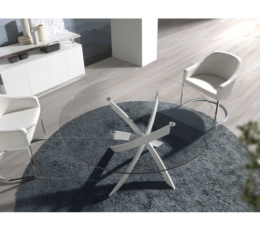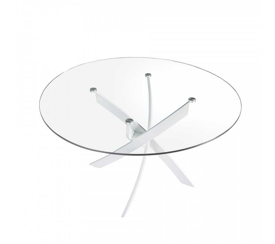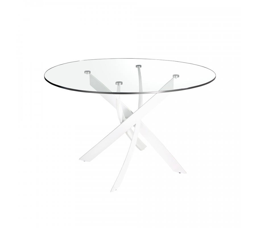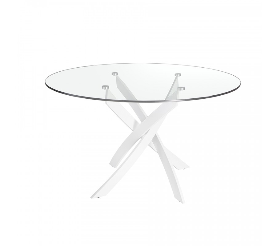 Luxusný sklenený okrúhly jedálenský stôl Urbano s bielymi dizajnovými prekríženými nožičkami 110 cm / 120 cm / 130 cm /140 cm