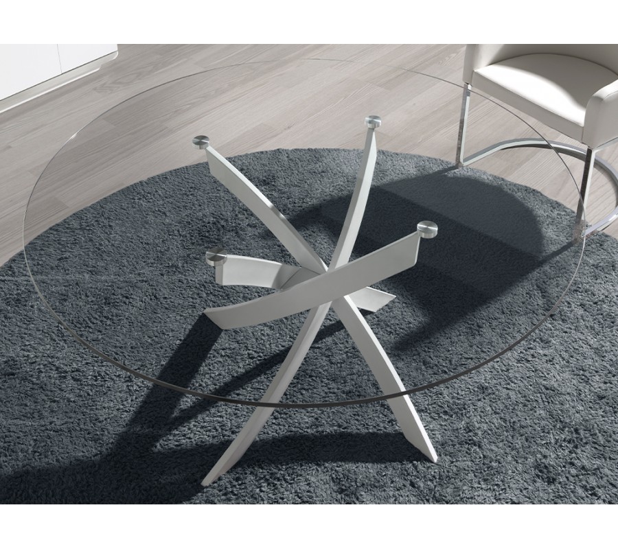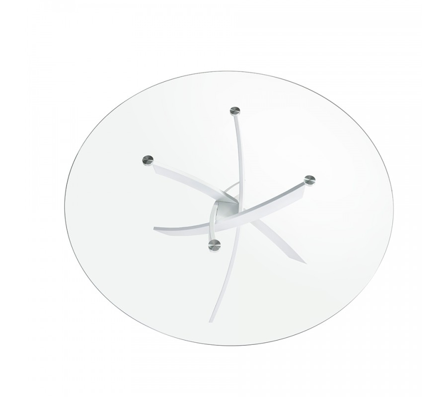 Vrchná doska má okrúhly tvar a je priehľadná, čo vám umožňuje naplno obdivovať originálnu podstavu zo všetkých strán. Je vyrobená z bezpečnostného skla, ktoré sa vyrába temperovaním klasického skla. Pri tomto procese sa materiál zohreje na vysokú teplotu a následne prudko schladí, čo zmení jeho vnútornú štruktúru a stane sa mimoriadne pevným a odolným. Sklený povrch je tiež nenáročný na údržbu,
