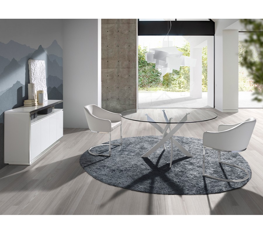Jedálenský stôl Urbano prinesie do vašej domácnosti dotyk moderného minimalizmu. Súčasný taliansky dizajn spája sklo a kov v elegantnom a vzdušnom vizuále, ktorý dodá vašej jedálni neprehliadnuteľný štýlový stredobod.