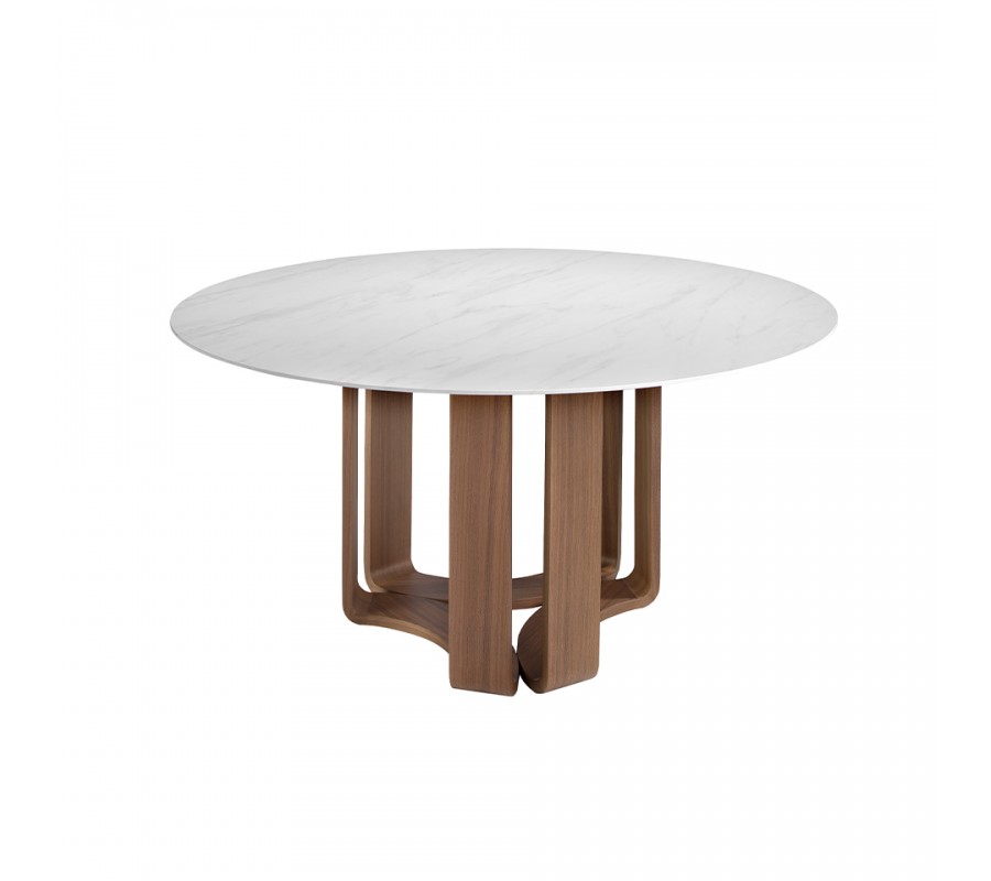 Jedálenský stôl Vita Naturale vás očarí sofistikovaným spojením bieleho mramoru a orechového dreva. Moderný taliansky dizajn prinesie do priestoru nádych luxusnej elegancie a okrúhla vrchná doska s priemerom 150 cm vytvorí stolovacie miesto pre 6 osôb.