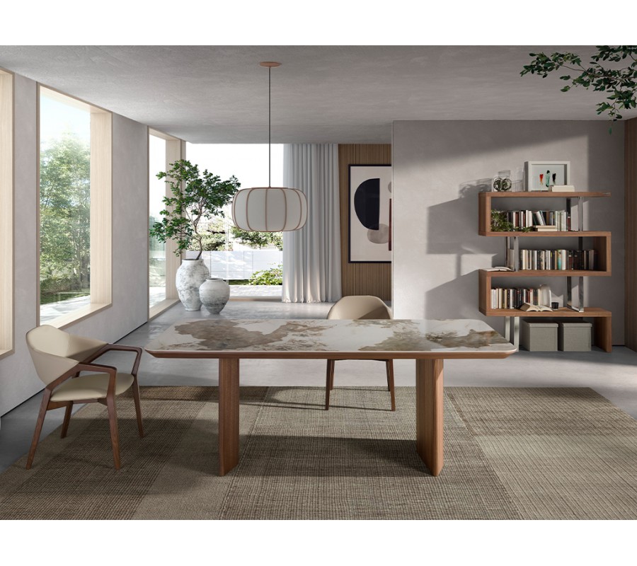 Jedálenský stôl Vita Naturale váš očarí sofistikovanou kombináciou dreva a mramoru, ktorá prinesie do priestoru elegantný prírodný prvok. Moderný taliansky dizajn dodá priestoru nádych luxusu a vrchná doska s dĺžkou 200 cm vám pomôže vytvoriť miesto na sedenie pre štyri až šesť osôb.