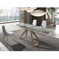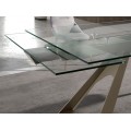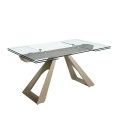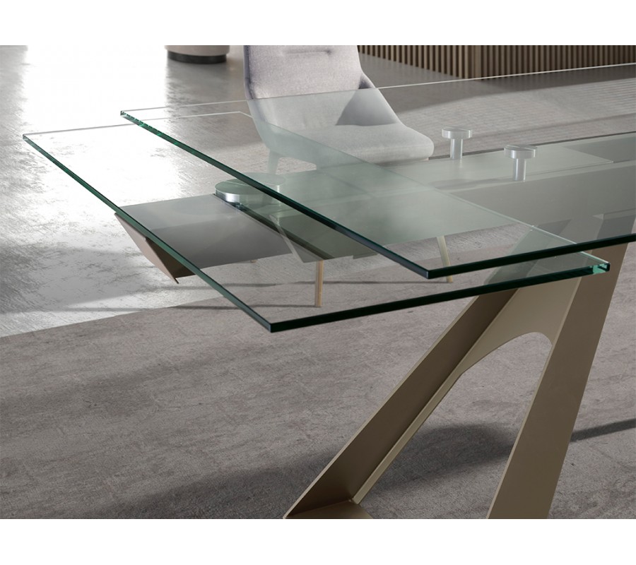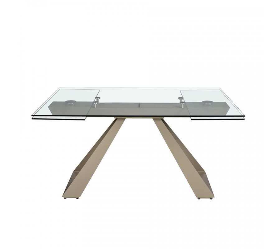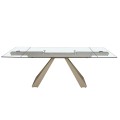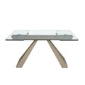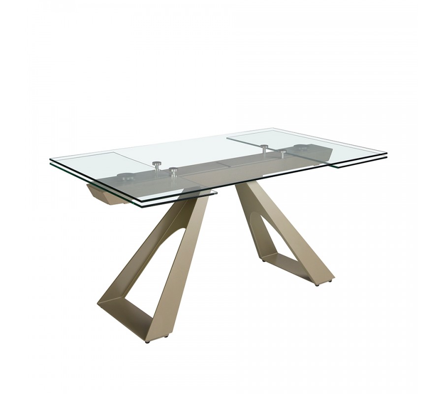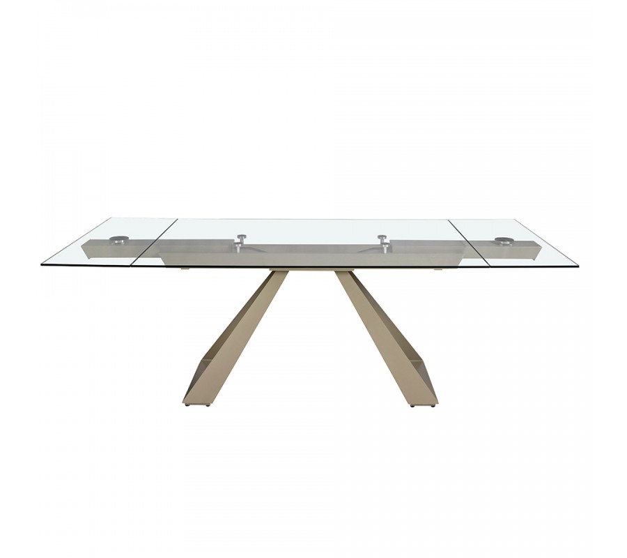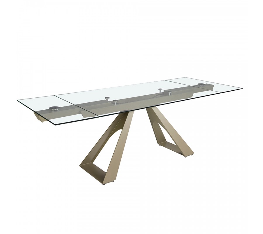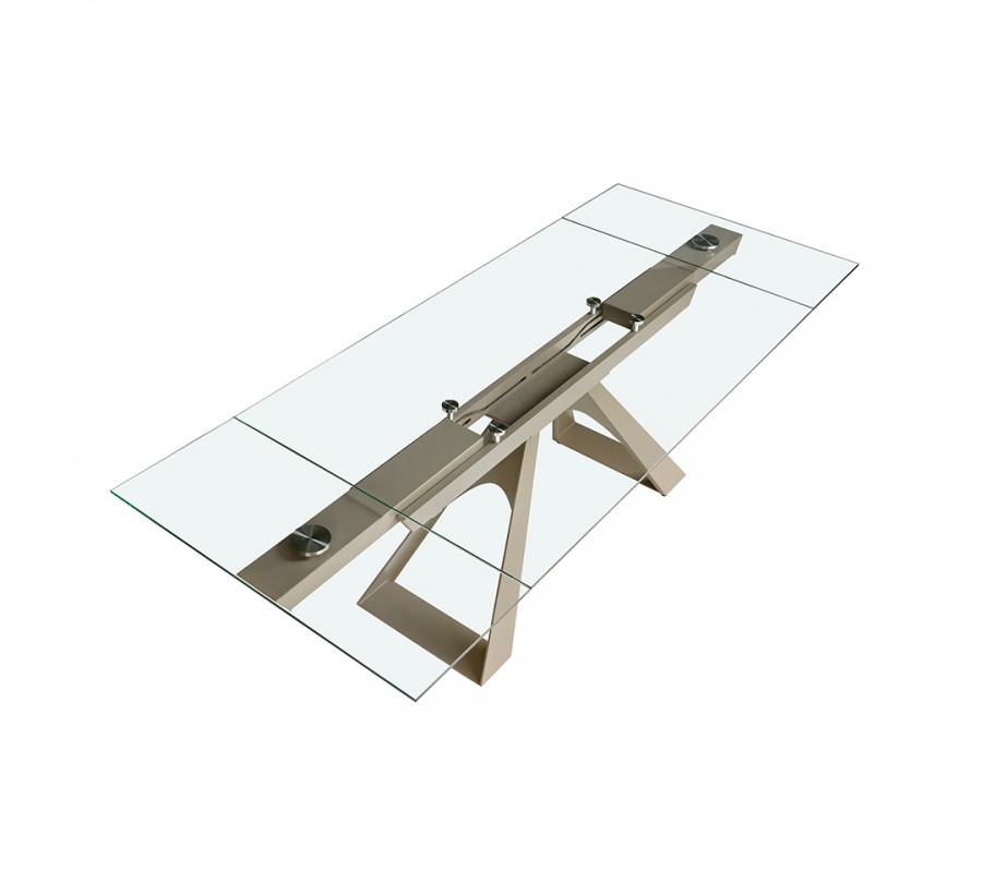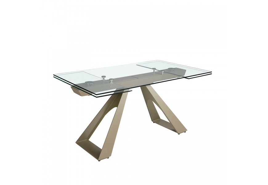 Luxusný sklenený obdĺžnikový rozkladací stôl Forma Moderna s kovovou podstavou v lesklej šampanskej béžovej farbe 160 - 240 cm