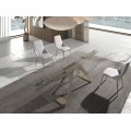 Vrchná doska má minimalistický obdĺžnikový tvar. Je priehľadná, čo zameriava pozornosť na extravagantnú podstavu a vyrobená z bezpečnostného skla, ktoré vám zabezpečí odolný a na údržbu nenáročný povrch. Flexibilitu ponúkajú dva panely s dĺžkou 40 cm, umiestnené na kratších stranách stola, ktoré umožňujú vrchnú dosku predĺžiť zo 160 cm na 200 cm alebo 240 cm.