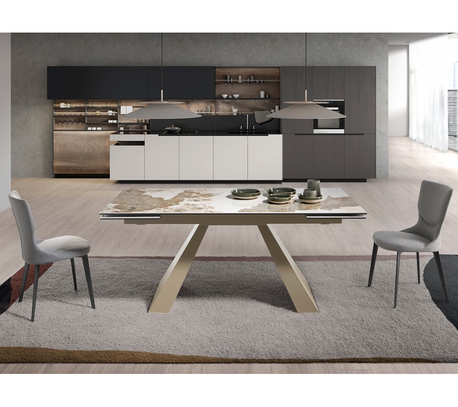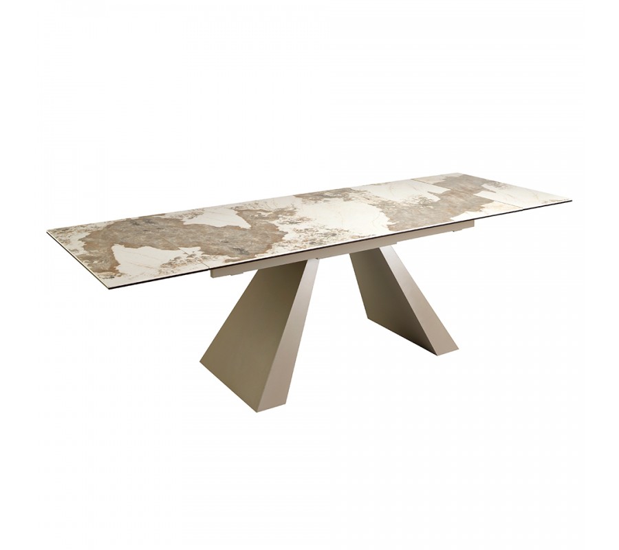 Luxusný moderný rozkladací obdĺžnikový jedálenský stôl Vita Naturale s vrchnou doskou s dizajnom mramoru béžová 180 - 260 cm