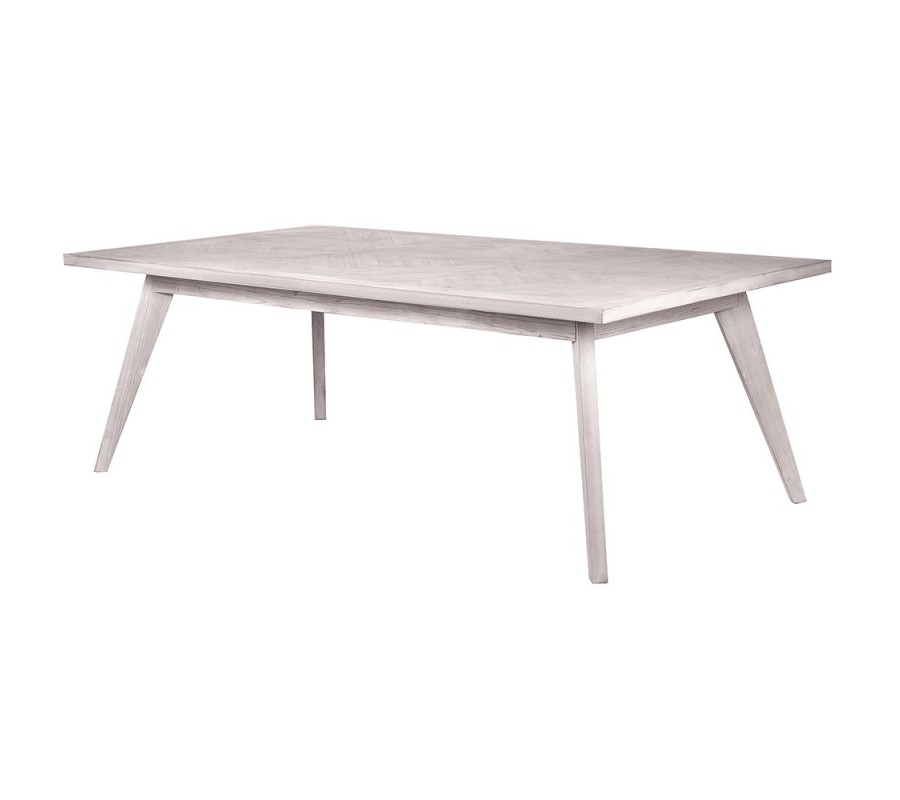 Jedálenský stôl Parquete prinesie do vašej domácnosti elegantný vintage charakter. Vďaka originálnemu dizajnu vrchnej dosky bude centrálnym dekoračným prvkom miestnosti. Svetlá farba vám pomôže priestor presvetliť a s dĺžkou 220 cm vytvoríte stolovacie miesto pre osem osôb.