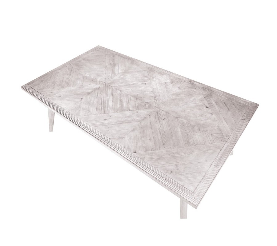 Luxusný vidiecky obdĺžnikový jedálenský stôl Parquet v krémovej bielej farbe s parketovým dizajnom vrchnej dosky 220 cm