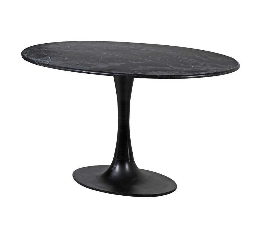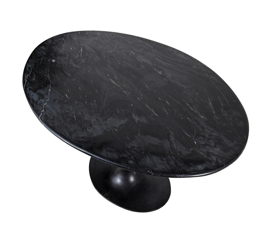 Luxusný mramorový čierny oválny jedálenský stôl Piedra s jednou nohou a vrchnou doskou s jemným prírodným žilovaním 180 cm