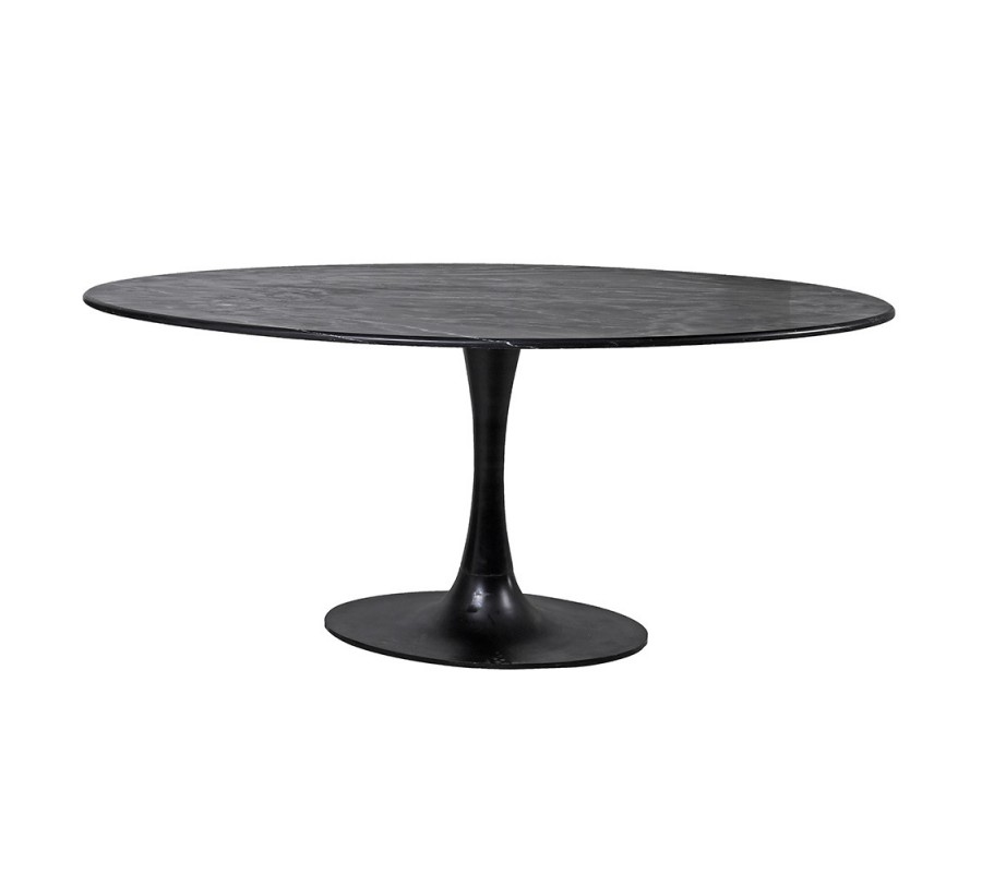 Noha stola korešponduje svojimi zaoblenými líniami s oválnym tvarom vrchnej dosky. Je vyrobená z kovu v čiernej farbe s matným finišom, čo prináša do dizajnu nádych industriálneho štýlu.