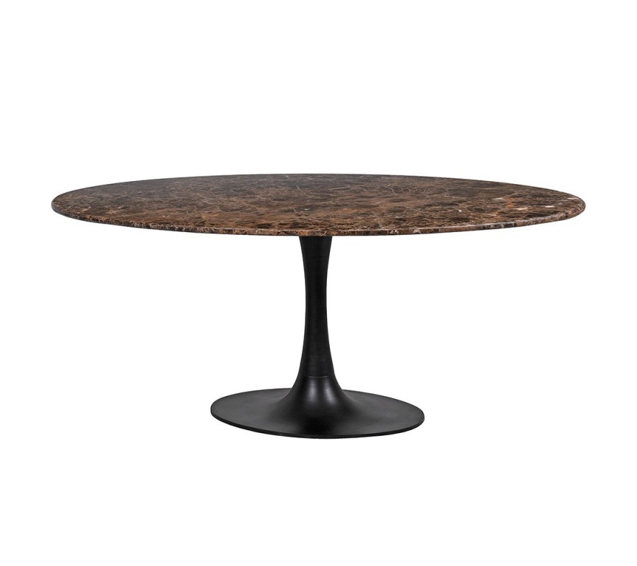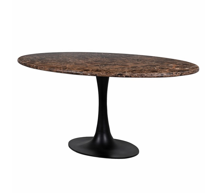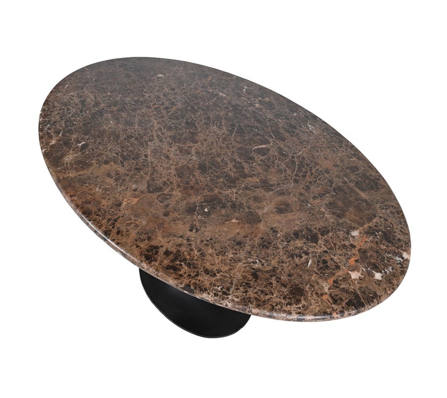 Luxusný mramorový oválny jedálenský stôl Piedra s doskou z hnedého mramoru Emperador a čiernou kovovou nohou 180 cm