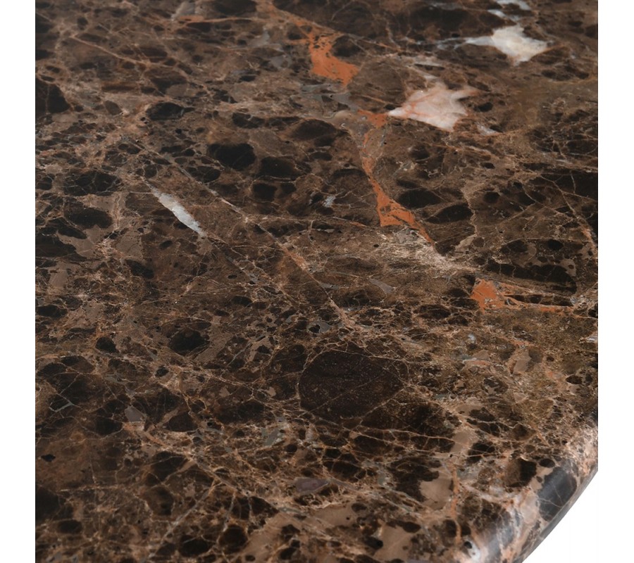 Vrchná doska je vyrobená z mramoru Emperador. Tento luxusný materiál pochádza zo Španielska a vyznačuje svojou charakteristickou hnedou farbou, kombinujúcou tmavšie a svetlejšie odtiene v podmanivej kompozícii s bohatým naturálnym vzorom.