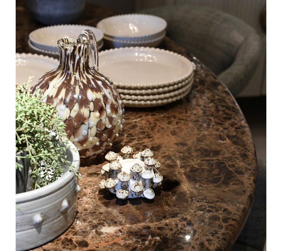 Jedálenský stôl Piedra vás očarí jedinečnou krásou mramoru Emperador. Jeho charakteristická hnedá farba prinesie do miestnosti luxusný akcentový prvok, zatiaľ čo minimalistická silueta pôsobí moderným dojmom.