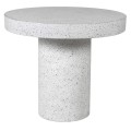 Mramorový štýlový jedálenský stôl Terazzo v bielej farbe s okrúhlou doskou a valcovou nohou 90 cm