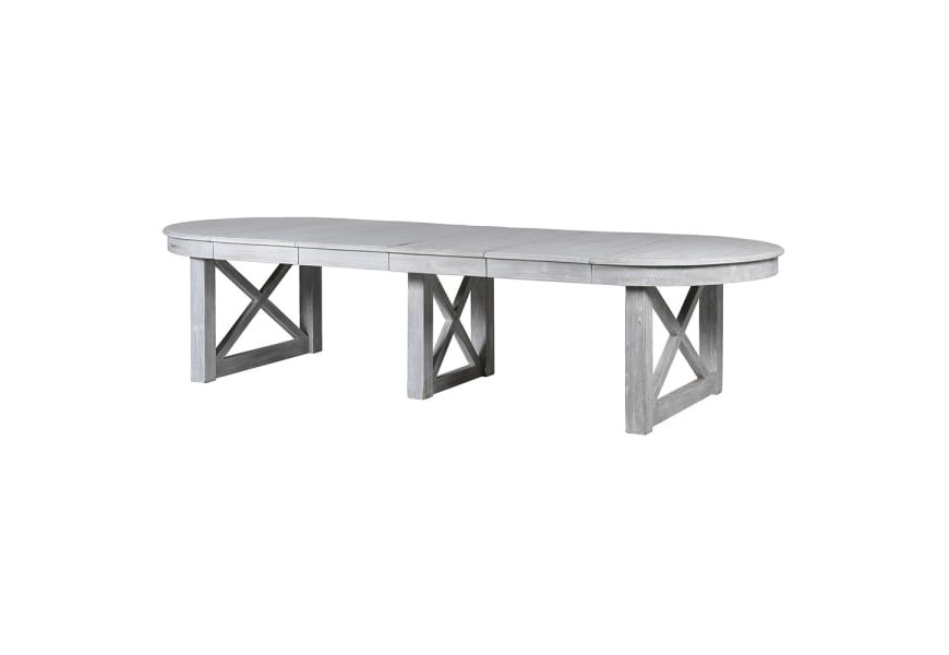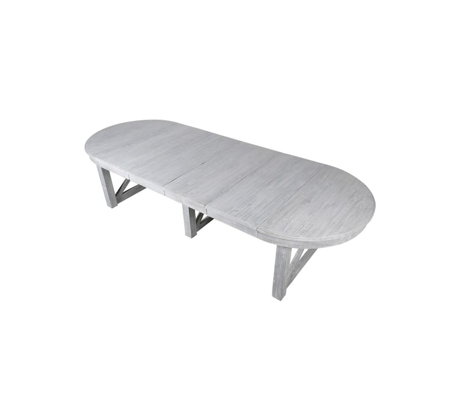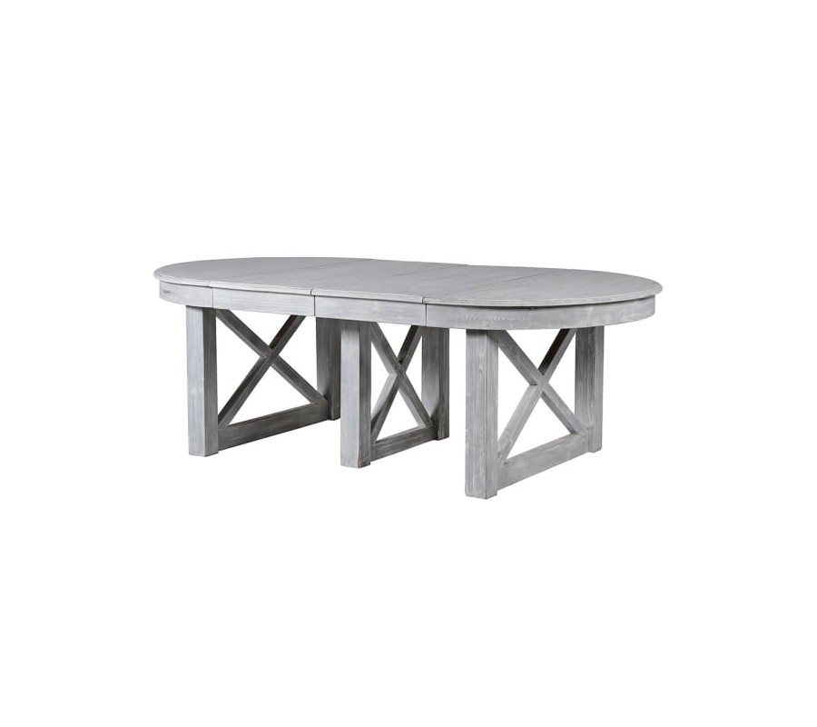 Provensalský sivý rozkladací jedálenský stôl X s tromi variáciami a mohutnými nohami 326 cm
