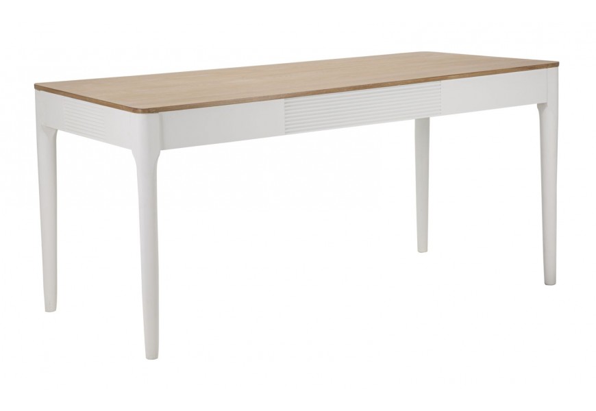 Štýlový obdĺžnikový jedálenský stôl Samira s hnedou vrchnou doskou a nožičkami v bielej farbe 180 cm